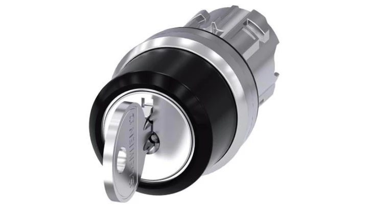 wyłącznik kluczowy Siemens, 22 mm, okrągły, tworzywo sztuczne, zamek specjalny, z 2 kluczami, 2 pozycje łącznika O 3SU1000-5BC01