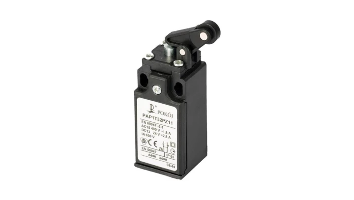 Wyłącznik krańcowy 2R wolnoprzełączający popychacz stalowy dźwignia pionowa z rolką Ø12,5 PAP1T32PW02 A37-1064