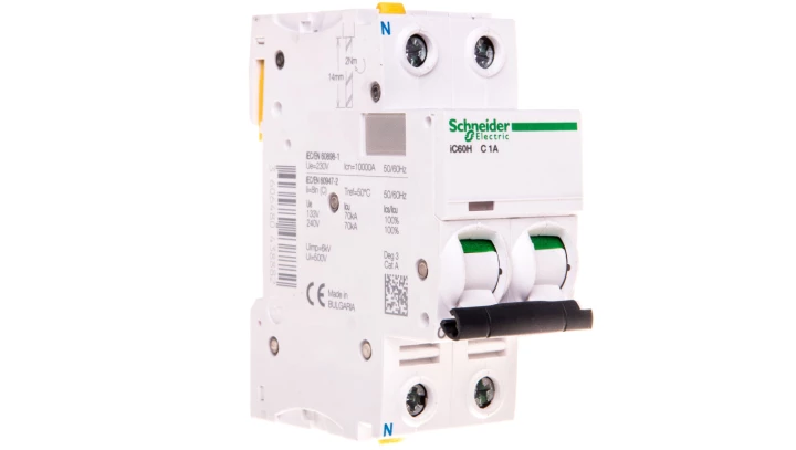 Wyłącznik nadprądowy 1P+N C 1A 10kA AC iC60H-C1-1N A9F07601