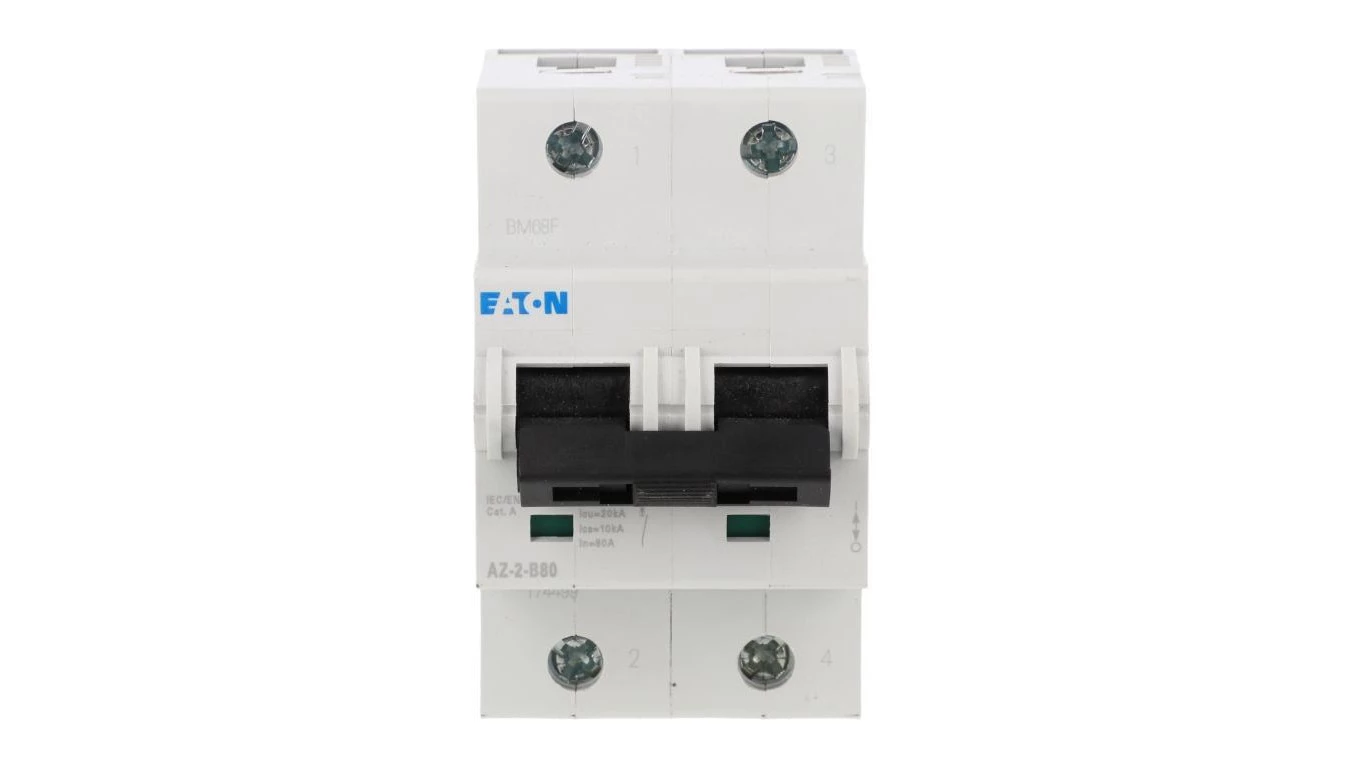 Wyłącznik nadprądowy 25kA, In=80A, charakterystyka B. 2-biegunowy. AZ-2-B80 o numerze katalogowym   174499 w kategorii Wyłączniki nadprądowe>Wyłączniki nadprądowe 25kA. Produkt wyprodukowany przez markę EATON, seria AZ.