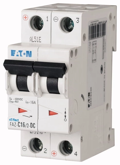 Wyłącznik nadprądowy na prąd stały 2-biegunowy FAZ-C10/2-DC o numerze katalogowym 279138 w kategorii Wyłączniki nadprądowe 15kA, Wyłączniki nadprądowe. Produkt wyprodukowany przez markę EATON, seria FAZ.