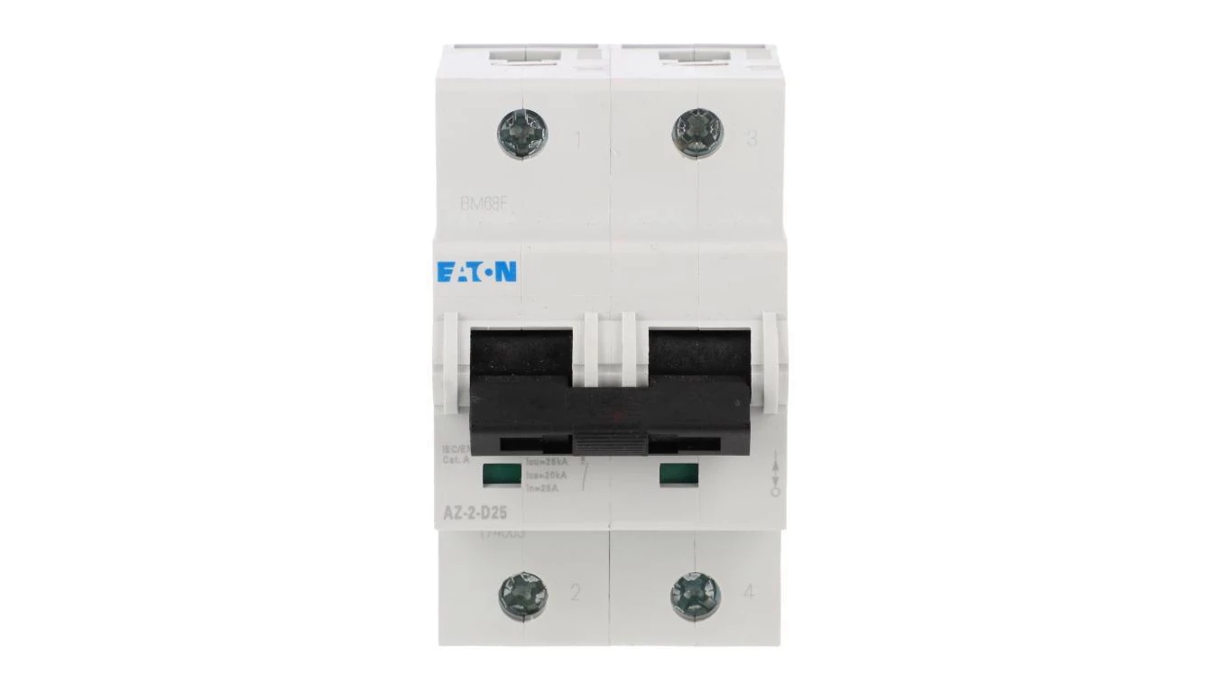 Wyłącznik nadprądowy 25kA, In=25A, charakterystyka D. 2-biegunowy. AZ-2-D25 o numerze katalogowym   174503 w kategorii Wyłączniki nadprądowe>Wyłączniki nadprądowe 25kA. Produkt wyprodukowany przez markę EATON, seria AZ.