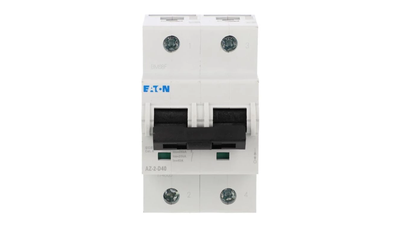 Wyłącznik nadprądowy 25kA, In=40A, charakterystyka D. 2-biegunowy. AZ-2-D40 o numerze katalogowym   174505 w kategorii Wyłączniki nadprądowe>Wyłączniki nadprądowe 25kA. Produkt wyprodukowany przez markę EATON, seria AZ.