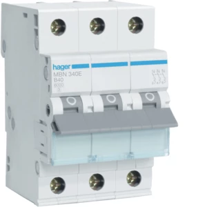 Wyłącznik nadmiarowo-prądowy, 6kA, charakterystyka B, 3-biegunowy, 40A o numerze katalogowym MBN340E w kategorii Wyłączniki nadprądowe 6kA, Wyłączniki nadprądowe. Produkt wyprodukowany przez markę HAGER.