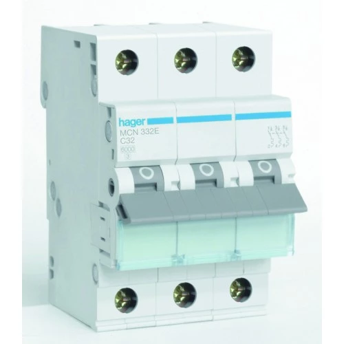 Wyłącznik nadmiarowo-prądowy, 6kA, charakterystyka C, 3-biegunowy, 32A o numerze katalogowym MCN332E w kategorii Wyłączniki nadprądowe 6kA, Wyłączniki nadprądowe. Produkt wyprodukowany przez markę HAGER.