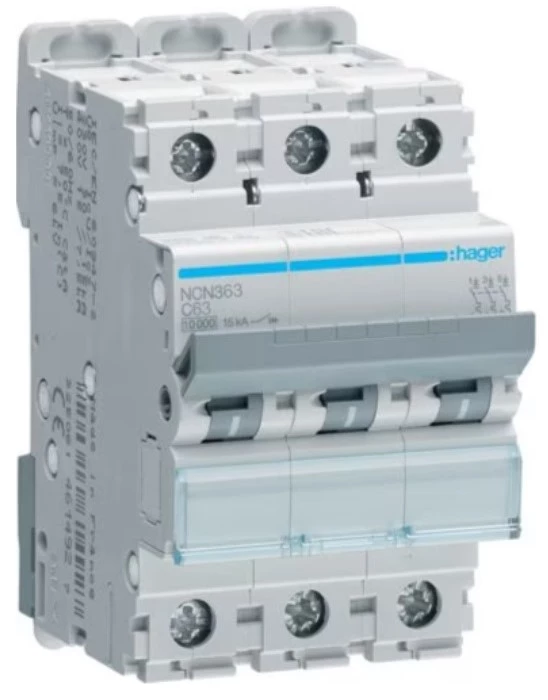 Wyłącznik nadprądowy Icn=10000A / Icu=15kA 3P C 63A o numerze katalogowym NCN363 w kategorii Pozostałe, Niesklasyfikowane., seria MCB.