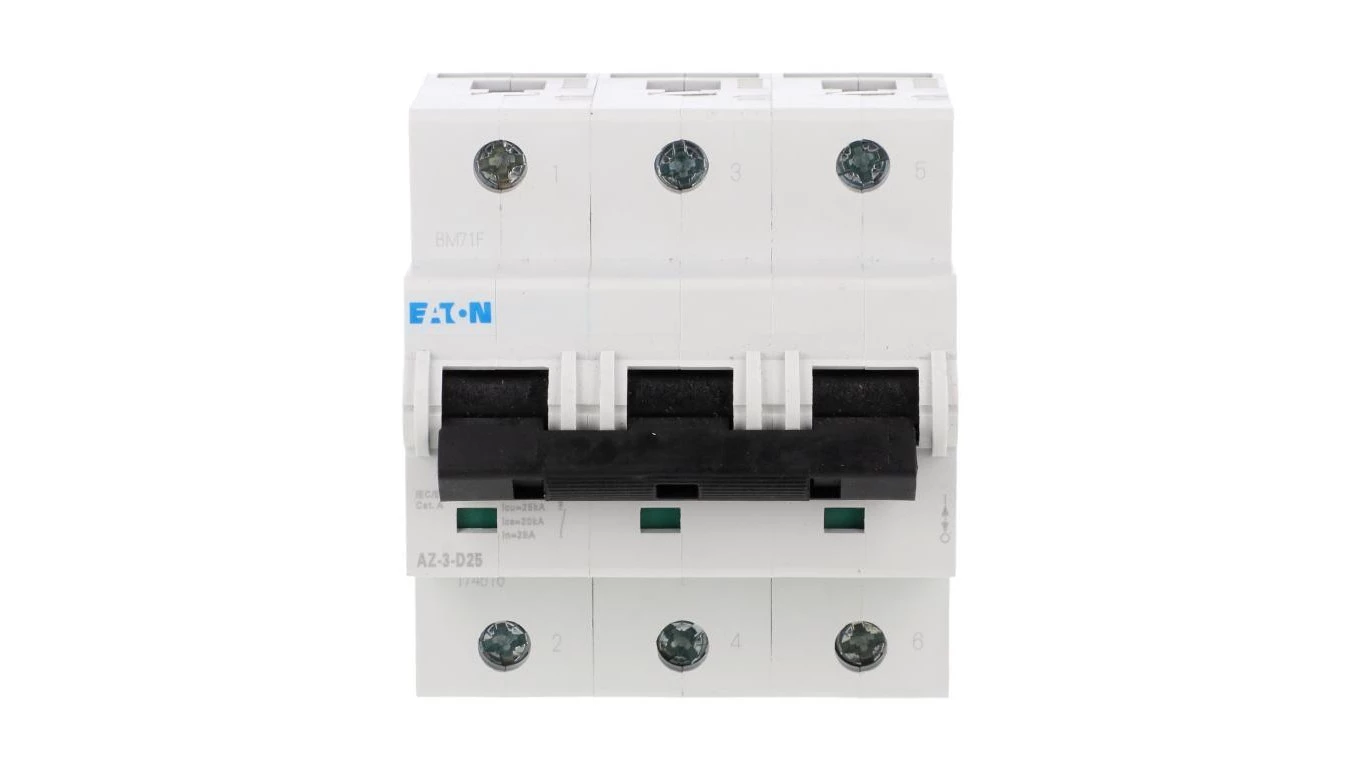 Wyłącznik nadprądowy 25kA, In=25A, charakterystyka D. 3-biegunowy. AZ-3-D25 o numerze katalogowym   174516 w kategorii Wyłączniki nadprądowe>Wyłączniki nadprądowe 25kA. Produkt wyprodukowany przez markę EATON, seria AZ.