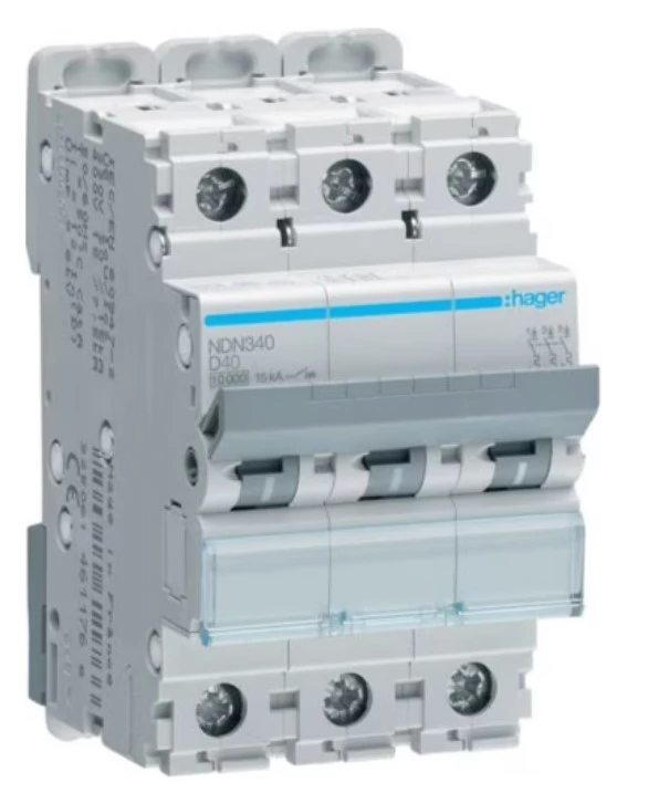 Wyłącznik nadprądowy Icn=10000A / Icu=15kA 3P D 40A o numerze katalogowym NDN340 w kategorii Pozostałe, Niesklasyfikowane., seria MCB.