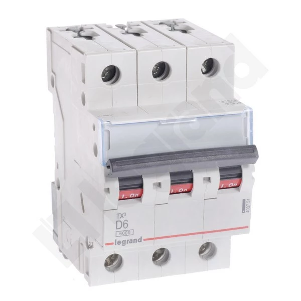 Wyłącznik nadprądowy S 303 3P D 6A 6000A TX3 o numerze katalogowym 403751 w kategorii Wyłączniki nadprądowe 6kA, Wyłączniki nadprądowe. Produkt wyprodukowany przez markę LEGRAND, seria S30TX.