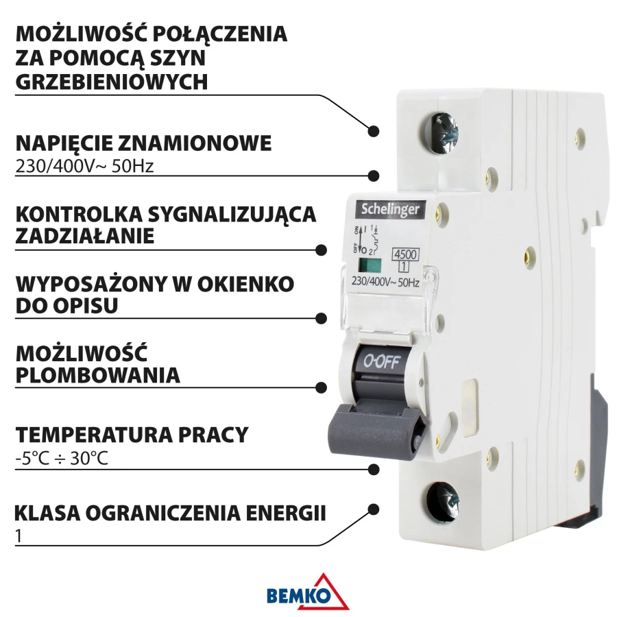 WYŁĄCZNIK NADPRĄDOWY 4,5KA 1P C 10A SCHELINGER A02-G7-1P-C10