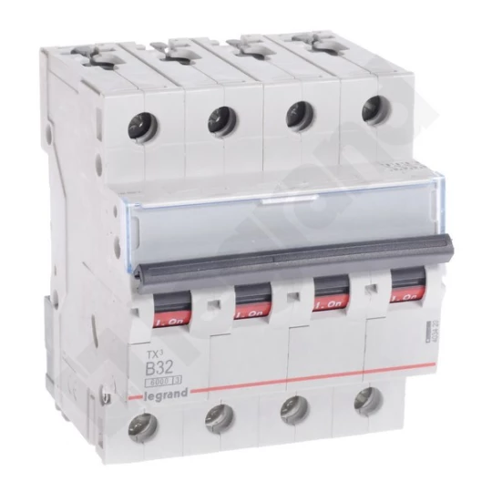 Wyłącznik nadprądowy S 304 4P B 32A 6000A TX3 o numerze katalogowym 403420 w kategorii Wyłączniki nadprądowe 6kA, Wyłączniki nadprądowe. Produkt wyprodukowany przez markę LEGRAND, seria S30TX.