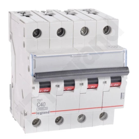 Wyłącznik nadprądowy S304 4P C 40A 6000A TX3 o numerze katalogowym 403566 w kategorii Akcesoria do systemów ładowania pojazdów elektrycznych, Systemy ładowania pojazdów elektrycznych. Produkt wyprodukowany przez markę LEGRAND, seria S30TX.