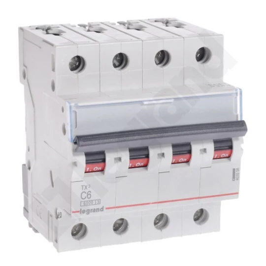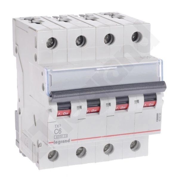 Wyłącznik nadprądowy S 304 4P C 6A 6000A TX3 o numerze katalogowym 403558 w kategorii Wyłączniki nadprądowe 6kA, Wyłączniki nadprądowe. Produkt wyprodukowany przez markę LEGRAND, seria S30TX.