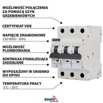 Wyłącznik nadprądowy 6KA 3P B 20A SCHELINGER A02-G8-3P-B20