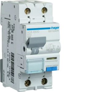 Wyłącznik różnicowoprądowy z członem nadprądowym 1P+N 6kA B 32A/30mA Typ A o numerze katalogowym ADA932D w kategorii Pozostałe, Niesklasyfikowane. Produkt wyprodukowany przez markę HAGER, seria RCBO.