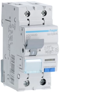Wyłącznik różnicowoprądowy z członem nadprądowym 1P+N 6kA B 32A/30mA Typ AC o numerze katalogowym ADC932D w kategorii Pozostałe, Niesklasyfikowane. Produkt wyprodukowany przez markę HAGER, seria RCBO.