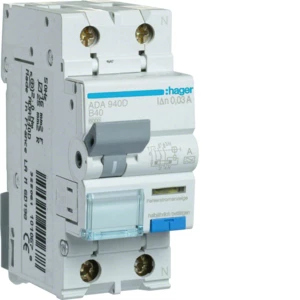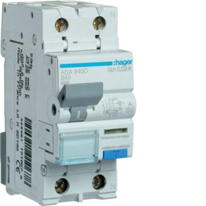 Wyłącznik różnicowoprądowy z członem nadprądowym 1P+N 6kA B 40A/30mA Typ A o numerze katalogowym ADA940D w kategorii Pozostałe, Niesklasyfikowane. Produkt wyprodukowany przez markę HAGER, seria RCBO.