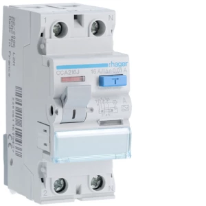 Wyłącznik różnicowoprądowy 1P+N 16A 10mA 6kA A o numerze katalogowym CCA216J w kategorii Pozostałe, Niesklasyfikowane. Produkt wyprodukowany przez markę HAGER, seria RCCB.