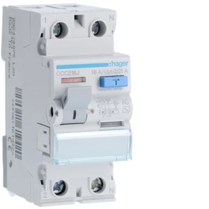 Wyłącznik różnicowoprądowy 1P+N 16A 10mA 6kA AC o numerze katalogowym CCC216J w kategorii Pozostałe, Niesklasyfikowane. Produkt wyprodukowany przez markę HAGER, seria RCCB.