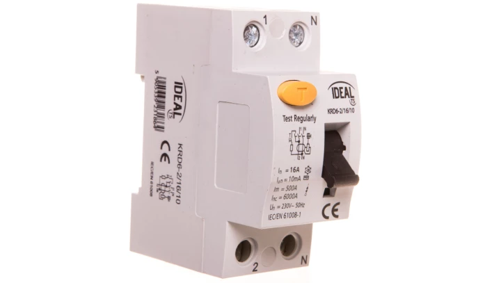 Wyłącznik różnicowo-prądowy, 2P KRD6-2/16/10 o numerze katalogowym   23186 w kategorii Wyłączniki różnicowoprądowe>Wyłączniki różnicowoprądowe typ AC. Produkt wyprodukowany przez markę IDEAL.