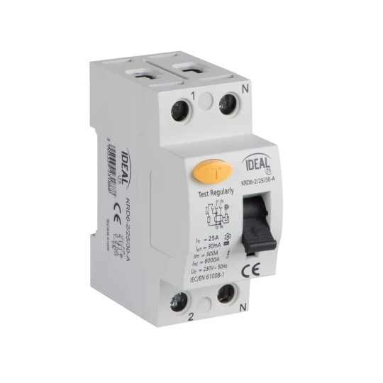 Wyłącznik różnicowo-prądowy, 2P KRD6-2/25/300 o numerze katalogowym   23195 w kategorii Wyłączniki różnicowoprądowe>Wyłączniki różnicowoprądowe typ AC. Produkt wyprodukowany przez markę IDEAL.