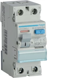 Wyłącznik różnicowoprądowy 1P+N 63A 30mA 6kA AC o numerze katalogowym CDC263J w kategorii Pozostałe, Niesklasyfikowane. Produkt wyprodukowany przez markę HAGER, seria RCCB.