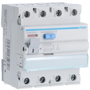 Wyłącznik różnicowoprądowy 3P+N 40A 100mA 6kA A S o numerze katalogowym CNA440J w kategorii Pozostałe, Niesklasyfikowane. Produkt wyprodukowany przez markę HAGER, seria RCCB.
