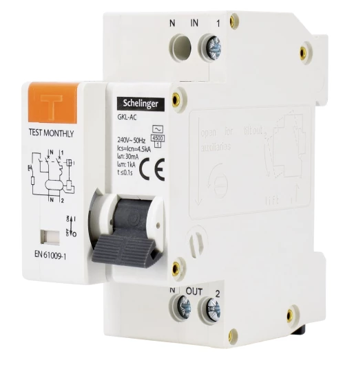 Wyłącznik różnicowoprądowy RCBO 2P B 16A 30mA TYP AC Schelinger A08-GKL-AC-B16