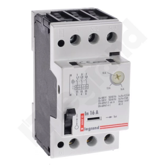 Wyłącznik silnikowy z wyzwalaczem termiczym i elektromagnetycznym z torem neutralnym N M250 (10A -16A) o numerze katalogowym 606810 w kategorii Wyłączniki silnikowe, Sterowanie i zabezpieczenie silników. Produkt wyprodukowany przez markę LEGRAND, seria M250.
