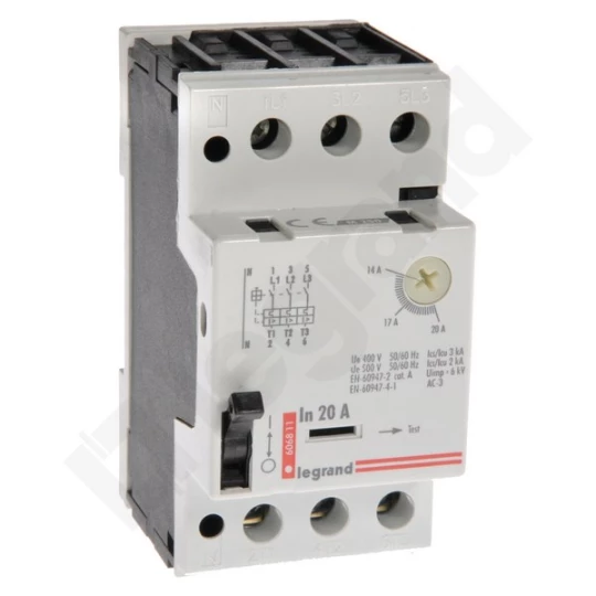 Wyłącznik silnikowy z wyzwalaczem termiczym i elektromagnetycznym z torem neutralnym N M250 (14A - 20A) o numerze katalogowym 606811 w kategorii Wyłączniki silnikowe, Sterowanie i zabezpieczenie silników. Produkt wyprodukowany przez markę LEGRAND, seria M250.