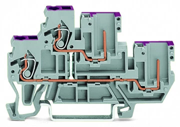 złączka bazowa 2-piętrowa 2-przewodowa/2-pinowa; złączka przelotowa 2-przewodowa/2-pinowa; 2,5 mm²; N; z mostkowaniem wewnętrznym; otwory na przewody z fiolet. nadrukiem; na szynę TS 35 x 15 i 35 x 7,5; CAGE CLAMP®; 2,50 mm²; niebieski
