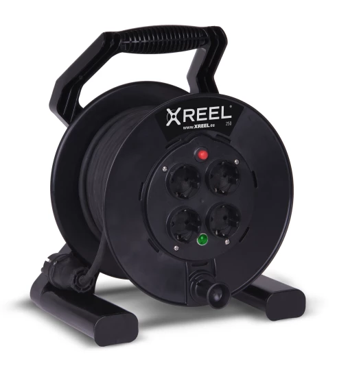 XREEL PRZEDŁUŻACZ ZWIJANY 50 MB 1-FAZ WYJŚCIE 4XGS Z TER. H05RR-F 3X1,5 WTYCZKA GUMOWA 16A IP20