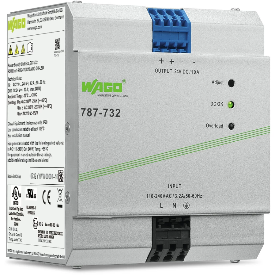 zasilacz; Eco; 1-faz.; napięcie wyjściowe 24 V DC; prąd wyjściowy 10 A; LED DC OK; 4,00 mm²