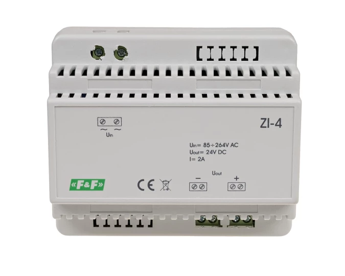 Zasilacz impulsowy ZI-4, napięcie wejściowe 85-264V AC, napięcie wyjściowe 5, 12, 15, 18, 24, 48 V DC, P=50W, 6 modułów o numerze katalogowym ZI-4 w kategorii Zasilacze i transformatory, Aparatura sterująca. Produkt wyprodukowany przez markę F&F.