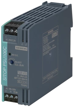 Zasilacz SITOP PSU100C 24 V/1.3 A STABILIZED POWER SUPPLY INPUT: AC 120-230 V (DC 110-300 V) OUTPUT: DC 24 V/1.3 A 6EP1331-5BA10