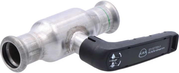Zawór kulowy Inox - 22 o numerze katalogowym 1609278002 w kategorii Kształtki ze stali nierdzewnej zaprasowywane, Ze stali nierdzewnej. Produkt wyprodukowany przez markę KAN-therm, seria INOX FITTINGS.