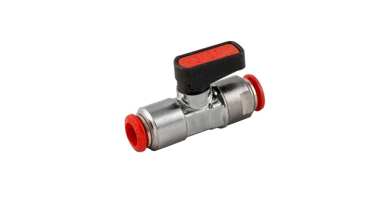Zawór kulowy wtykowy Ghilux mini do węża fi 6 mm, PN20 mosiądz niklowany PTFE/NBR