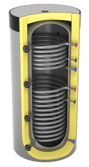 ZBIORNIK BUFOROWY PIONOWY STOJĄCY 200L Z DWIEMA WĘŻOWNICAMI CO 0.9M2/ SOLAR 0.7M2