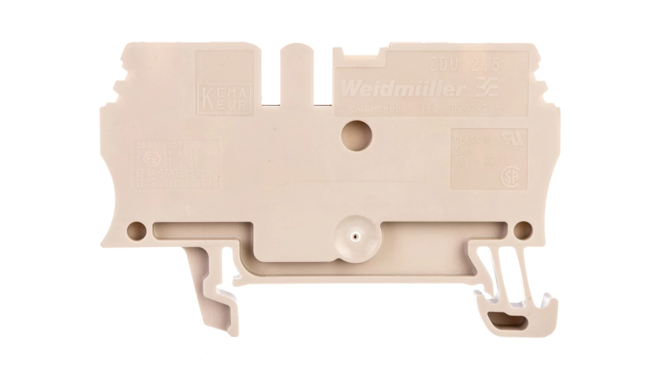 Złączka szynowa przelotowa ZDU 2.5 o numerze katalogowym 1608510000 w kategorii Złączki i zaciski ochronne śrubowe, Złączki listwowe śrubowe. Produkt wyprodukowany przez markę WEIDMULLER, seria ZDU.