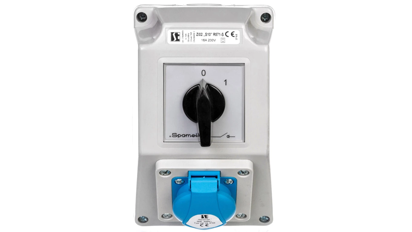 Zestaw instalacyjny z gniazdem SCHUKO 16A 230V 2P+PE (0-1) niebieski ZI02S10\R571-S
