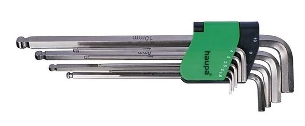 Zestaw kluczy imbusowych 1,5-10 mm grot kulowy ekstra długie o numerze katalogowym 100965 w kategorii Klucze imbusowe, Klucze. Produkt wyprodukowany przez markę HAUPA.