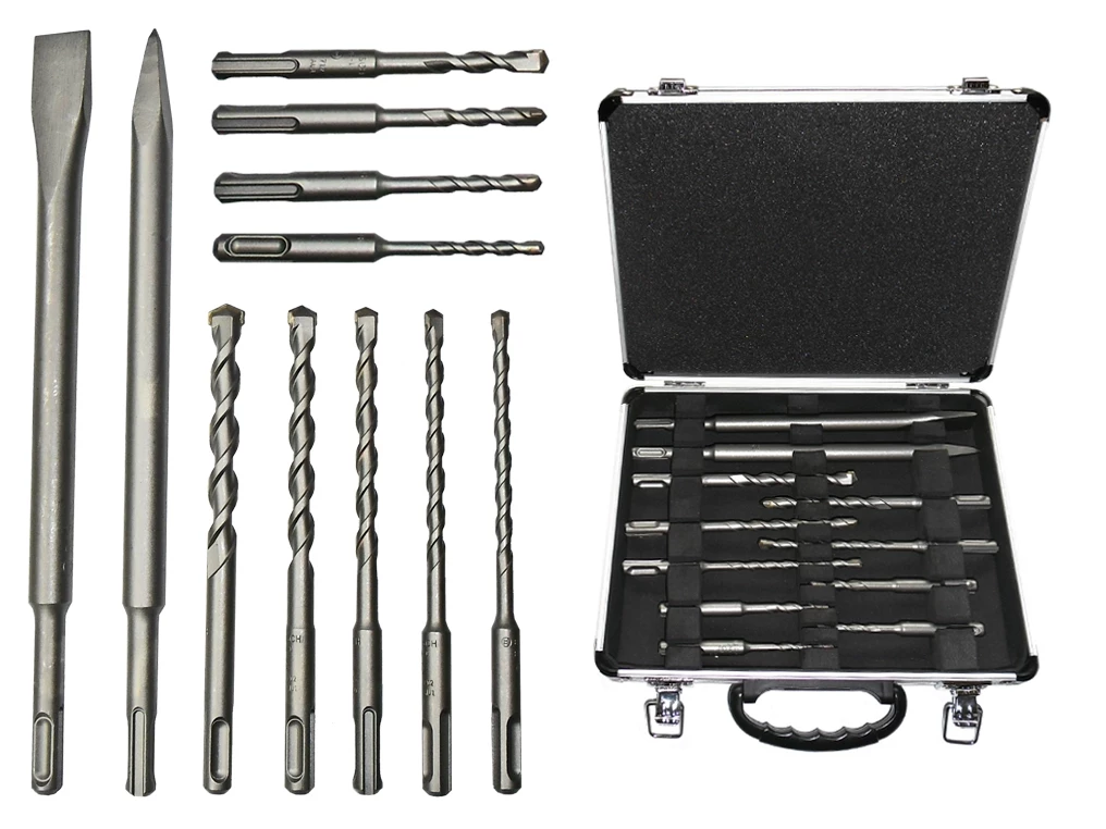 ZESTAW OSPRZĘTOWY SDS-PLUS DO BETONU 2XDŁUTO 9XWIERTŁO WALIZKA