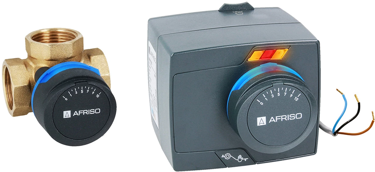Zestaw regulacyjny: 3-drogowy obrotowy zawór mieszający ARV 384 ProClick DN25, Rp1", Kvs 10 + siłownik elektryczny ARM 343 ProClick o numerze katalogowym 1338444 w kategorii Zawory mieszające 3-drogowe obrotowe, Zawory regulacyjne. Produkt wyprodukowany przez markę AFRISO, seria PROCLICK.