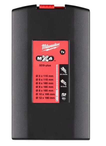 ZESTAW WIERTEŁ SDS+ MX4 W KASECIE 7SZT 5,6,6,8,8,10,12