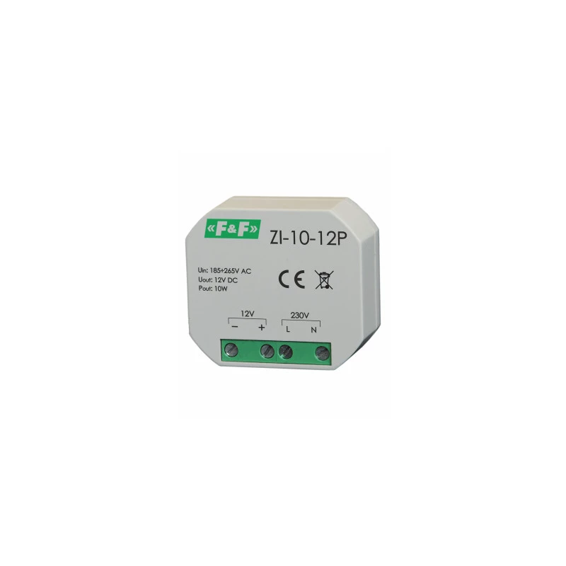 Zasilacz impulsowy do puszki 12V DC 10W o numerze katalogowym ZI-10-12P w kategorii Zasilacze i transformatory, Aparatura sterująca. Produkt wyprodukowany przez markę F&F, seria F&F.