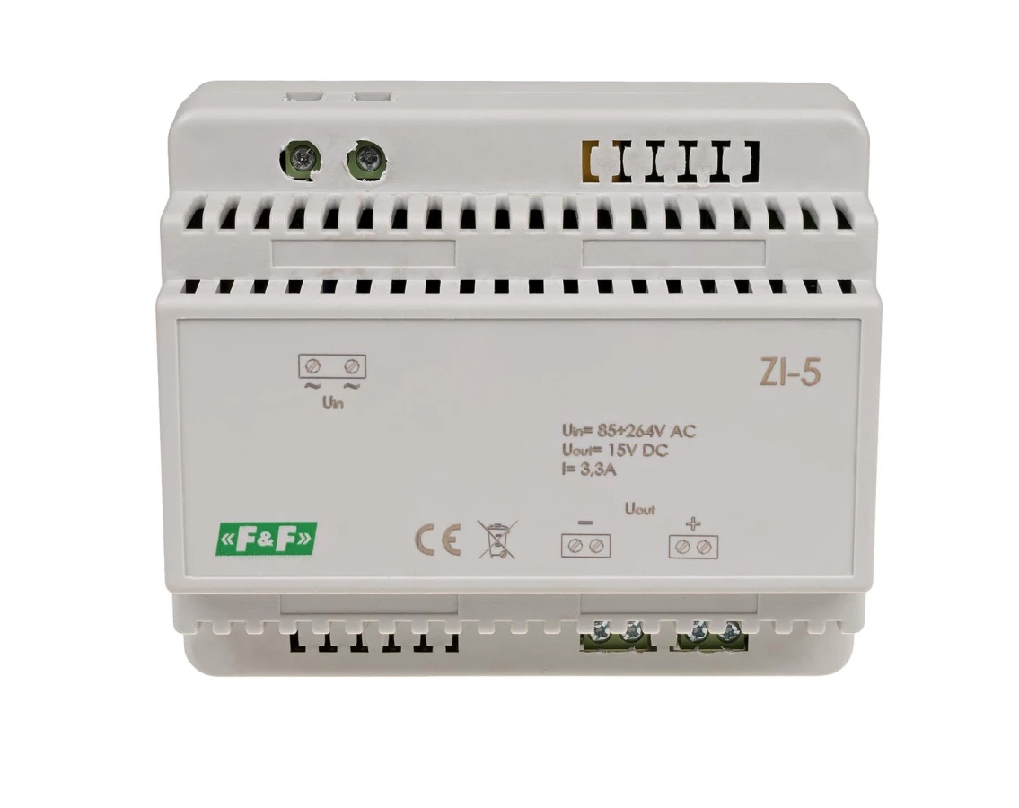 Zasilacz impulsowy ZI-5, napięcie wejściowe 85-264V AC, napięcie wyjściowe 5, 12, 15, 18, 24, 48 V DC, P=50W, 6 modułów o numerze katalogowym ZI-5 w kategorii Zasilacze i transformatory, Aparatura sterująca. Produkt wyprodukowany przez markę F&F.