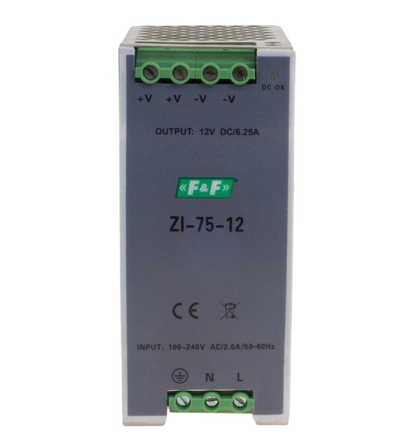 Zasialacz impulsowy przemysłowy nap. wej. 90÷264v ac/120÷370v dc, p=75w nap. wyj. 12v dc ZI-75-12V o numerze katalogowym ZI-75-12V w kategorii Zasilacze na szynę DIN, Zasilacze. Produkt wyprodukowany przez markę F&F.