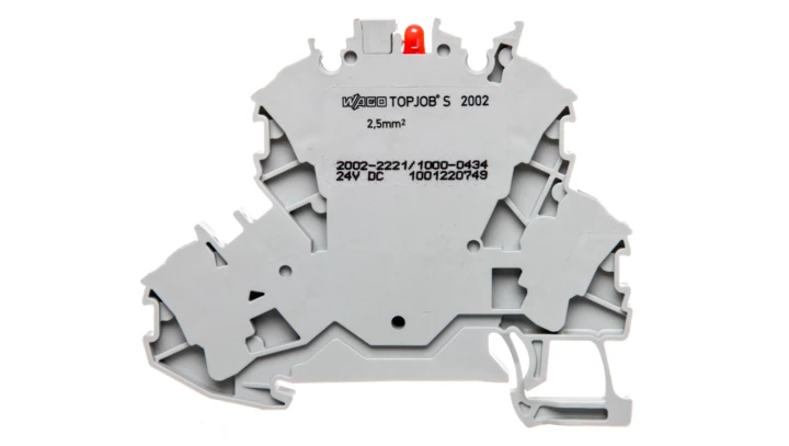 złączka do zabudowy elementów; 2-piętr.; LED czerwona; 24 V DC; na szynę TS 35 x 15 i 35 x 7,5; 2,5 mm²; Push-in CAGE CLAMP®; szary
