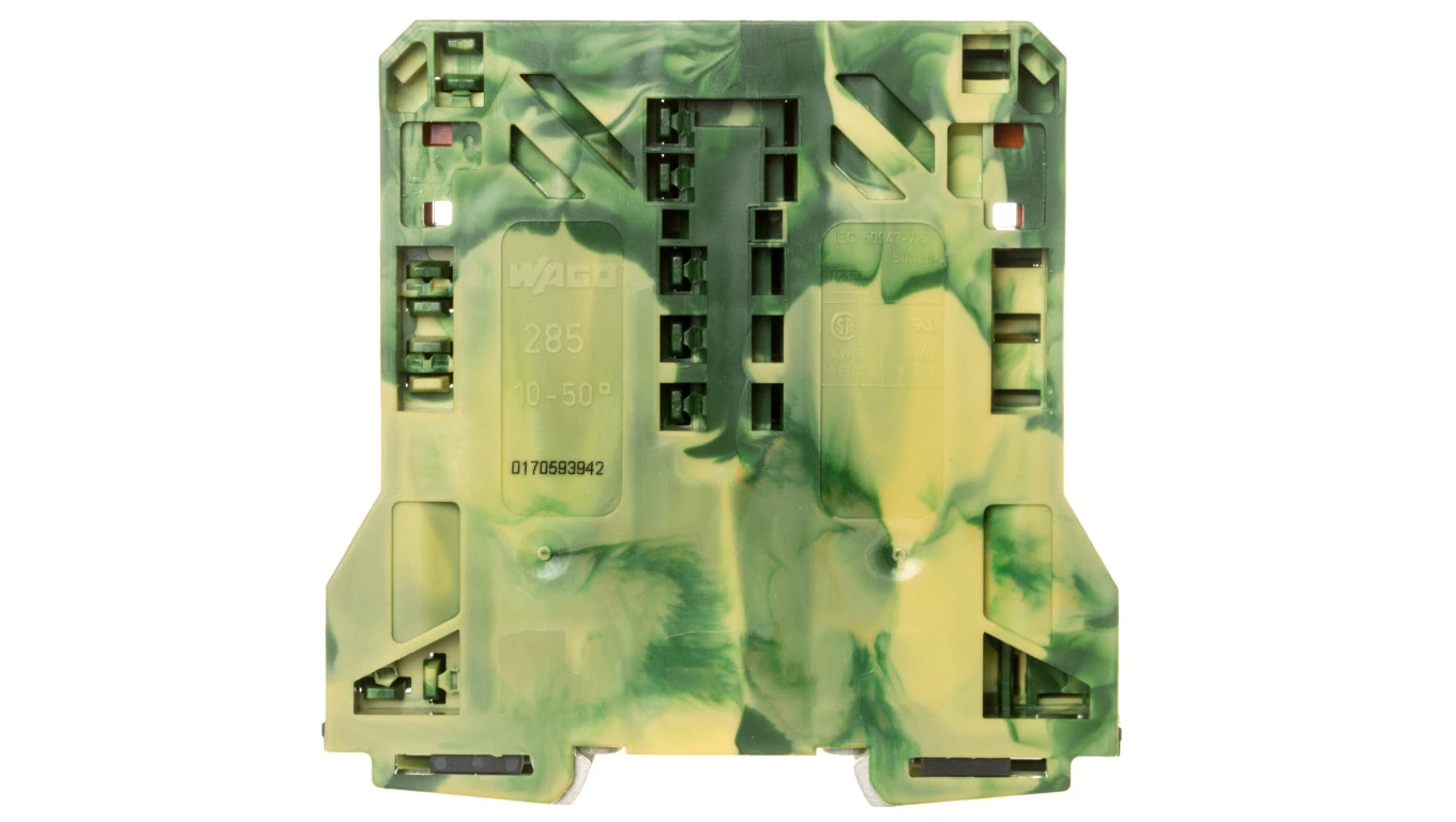 złączka PE 2-przewodowa; 50 mm²; boczne miejsca na oznaczniki; tylko na szynę TS 35 x 15; grubość 2,3 mm; miedź; POWER CAGE CLAMP; 50,00 mm²; żółto-zielony