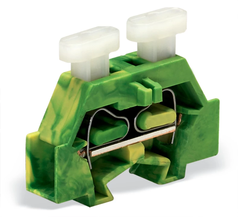 złączka końcowa 2-przewodowa bez uchwytu montażowego; przyciski po obu stronach; bez uchwytu montażowego; 1-bieg.; do listew zaciskowych ze stopkami zatrzaskowymi; 2,5 mm²; CAGE CLAMP®; 2,50 mm²; żółto-zielony